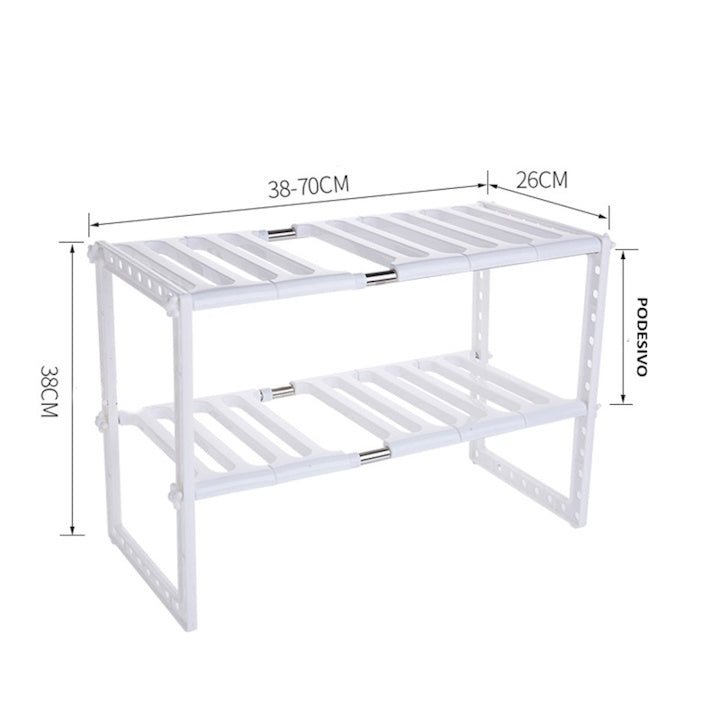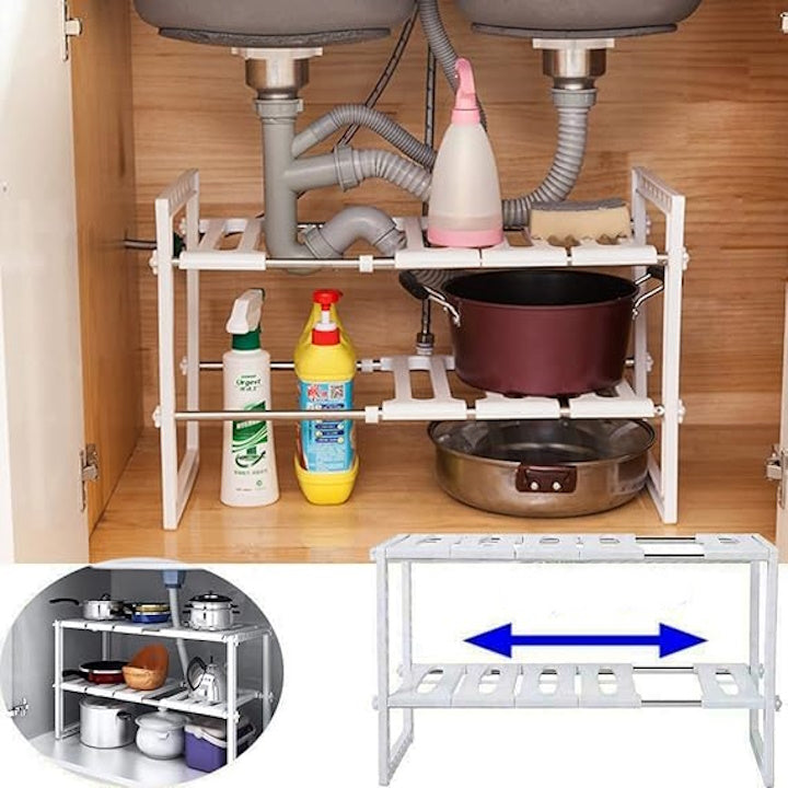 Iako je primarno namijenjena za postavljanje ispod sudopere, ova polica je izuzetno multifunkcionalna. Može se koristiti i u ostavi, kupatilu, kancelariji ili čak u garderoberu — svuda gdje je potrebno dodatno mjesto za organizaciju. Zahvaljujući podesivim dimenzijama i čvrstoj konstrukciji, lako se prilagođava različitim potrebama i tipovima prostora, čineći je praktičnim rješenjem za svaku prostoriju u domu.