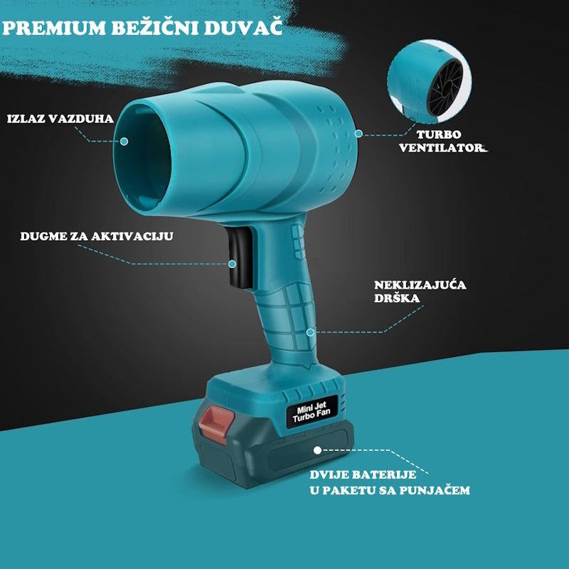 Zaboravite na metle i zamorno čišćenje! Ovaj premium bežični duvač donosi jednostavno rješenje za uklanjanje lišća, prašine, pijeska i sitnih otpadaka sa terasa, dvorišta i garaža. Zahvaljujući dvjema snažnim baterijama i bežičnom radu, omogućava slobodno kretanje i snažan protok zraka bez potrebe za kablovima. Idealan je za čišćenje računara, automobila, alata, radionica i vrtova, ali i za brzo sušenje površina i opreme. Kompaktan, moćan i praktičan. U setu dobijate dvije baterije i punjač.