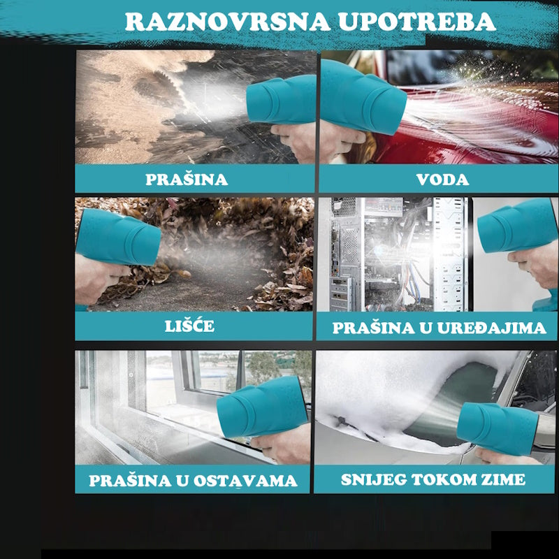 Bez obzira koristi li se u kući, radionici ili dvorištu, ovaj duvač pruža pouzdan i snažan protok zraka u svakoj situaciji. Lako uklanja prašinu iz uskih prostora, čisti unutrašnjost automobila ili raspuhuje lišće i prljavštinu s većih površina. Može se koristiti i za sušenje površina, mašina, filtera i elektronske opreme, što ga čini univerzalnim rješenjem za čišćenje bez napora. Kada dođe zima idealan je saputnik u autu za raspuhivanje snijega sa vetrobrana i auta.