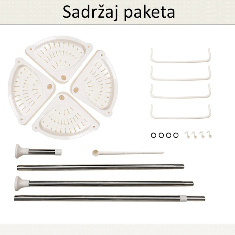Pogledajte koliko ovaj ugaoni stalak može biti praktičan! Sve vaše kupke, sapuni, peškiri i bočice sada imaju svoje mjesto, uredno i lako dostupno. Stalak štedi prostor i čini da vaše kupatilo izgleda organizovano i pregledno. U ponudi imamo dvije verzije: visine od 100 do 260 cm i visine od 100 do 320 cm, tako da možete izabrati idealnu za svoj prostor. Organizujte sve na dohvat ruke i uživajte u urednom i funkcionalnom kupatilu!